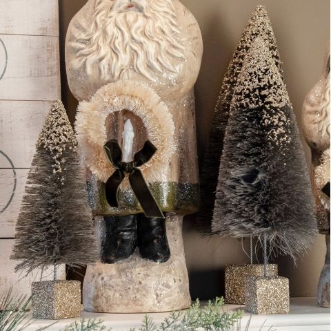 Grey Bottle Brush Trees with Glitter, Set of 3