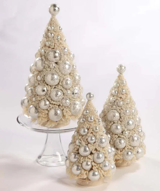 Ivory Bottle Brush Trees with Ornaments